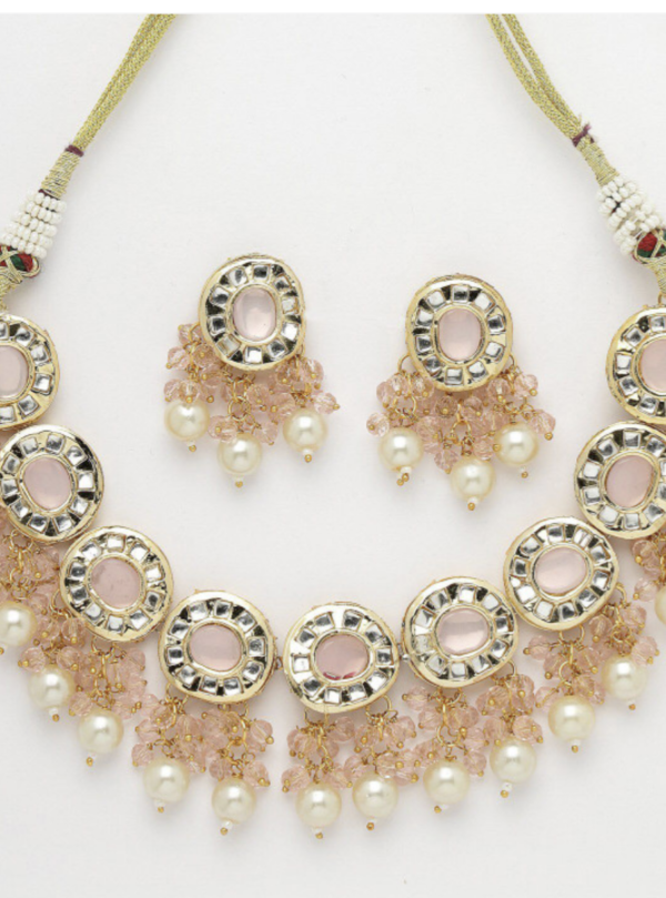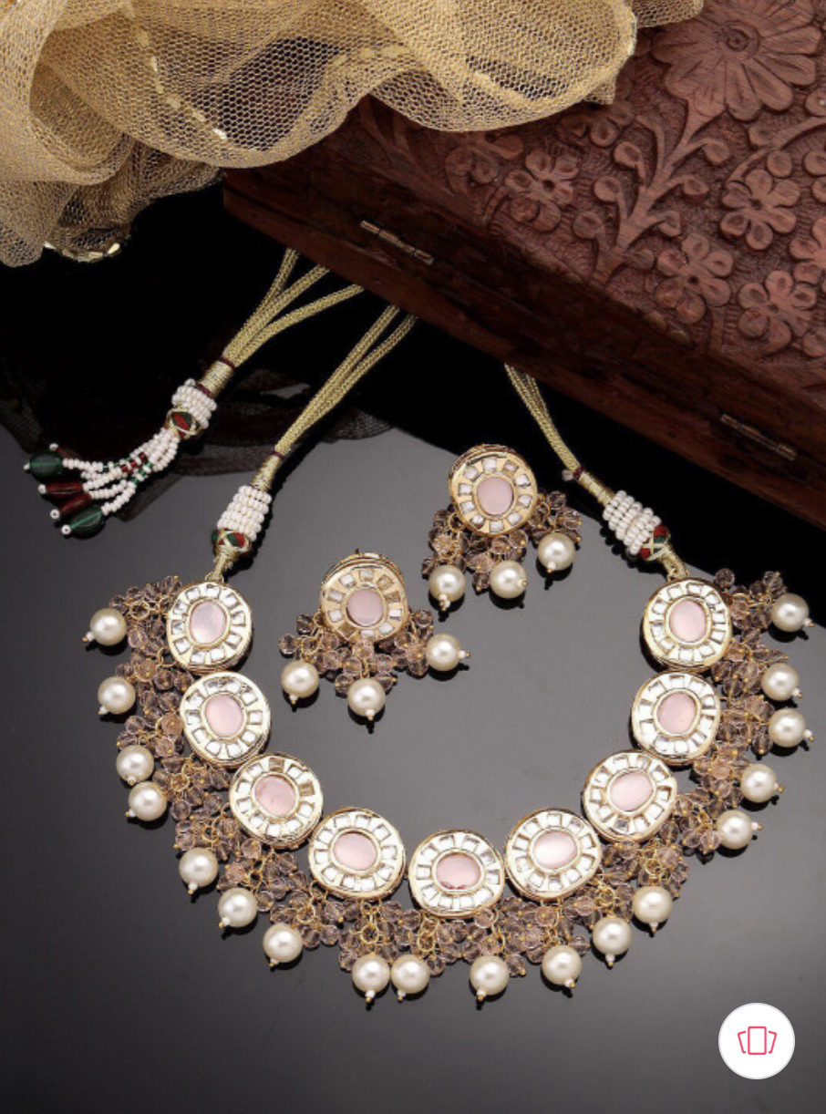 Gold-Plated Kundan-Stone Studded & Beaded Jewellery Set